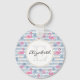 Un porte - clé avec un motif avec une ambiance estivale amusante. Flamants roses et ananas posés sur un motif rayé bleu clair avec feuilles et coeurs tout autour.
