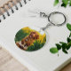 Keychain with a dog name monogram in a cute script font paired with your personalized photo on the front. The back has a pattern featuring ditsy paw print cookies and sugar dollops. Check out our store for more matching items from this collection.
