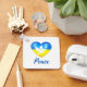Show support for the people of Ukraine with this keychain featuring a peace dove silhouette on a heart shaped flag of Ukraine