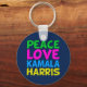 Cute Peace Love Kamala Harris porte - clé pour un démocrate progressiste qui aime les desseins politiques amusants et colorés. Vote pour Kamala à la présidence à l'élection de 2024. Un design libéral amusant dans des couleurs vives.