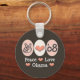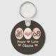 Montrez votre soutien à Barack et au parti démocratique en 2008 avec un joli symbole de paix rose et marron, coeur et porte - clé Obama 08. Arrière - plan brun foncé.