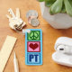 Un joli porte - clé de kiné physiothérapeute avec un joli signe vert de paix, coeur rouge, et le PT en bleu pour la physiothérapie. Achetez ce cadeau pour votre kiné préféré.