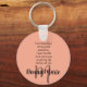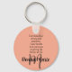 This keychain is peach colored and has a motivational quote on it. This inspirational gift key chain is customizable.