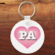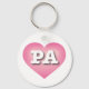Ce porte - clé est doté d'un coeur rose avec un centre lavé blanc contenant les lettres coques majuscules, blanches et audacieuses PA, l'abréviation officielle de Pennsylvanie, l'état clé.