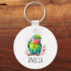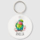 Porte - clé personnalisé avec une jolie illustration de perroquet. Un petit perroquet vert aux couleurs bleu et jaune se mélangeant. Le cou a une teinte vif de rose rougeâtre.