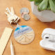Our 1st Valentine's Day / year, anniversary keepsake. Together. Blue ocean Beach,Couples Names in Hearts in Sand coastal memory keepsake Keychain