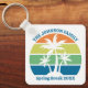Ces porte - clés de plage tropicale personnalisée et cool disposent de 3 palmiers silhouettes contre un ciel orange et bleu accentué de jaune et vert sur la côte. Customisez-vous pour un excellent cadeau de conservation d'excursion en famille pour votre escapade côtière ce printemps, vacances d'été ou de croisière sur l'océan.