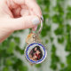 Custom Joyeux et Festive Bleu de Noël Photo Cadre Rond Porte - clé cadeau pour Best Friends. Un décor circulaire coloré et lumineux pour vos décorations d'hiver et bleu glacé. Le design du cadre est une conception d'abstraction géométrique et joliment motif sur les modèles traditionnels de blocs de couleurs festives. En hiver, les couleurs sont bleu glace et blanc neige, avec des touches de brun rougeâtre foncé. Personnalisez-le en remplaçant la photo par la vôtre, pour un cadeau précoce pour la famille et les amis, pour célébrer Noël. Chérissez vos souvenirs de Yuletide d'une Wonderland d'hiver. Un excellent moyen de garder vos clés organisées pour les meilleurs amis et frères et soeurs, ou couples. Un porte-clés économique pour les célébrations.