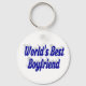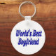 Porte - clé avec le meilleur petit ami du monde en texte bleu 3D. Porte - clés ronds et carrés disponibles en plusieurs tailles.