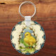 Image vintage très mignonne d'un petit poussin entouré de bourgeons de saules faisant un joli porte - clé de Pâques.