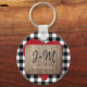 Design imprimé en bois gravé avec des initiales manuscrites et datent sur un motif en plaid rustique noir et blanc. Cadeau mignon pour petit ami ou petite amie pour la Saint Valentin, anniversaire de couple ou fiançailles.