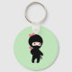 La mignonne fille de dessin animé ninja est habillée tout en noir mais pour un arc rose sur son masque de tête. Le katana d’épée japonaise traditionnel peut être vu attaché sur son épaule, sa poignée est également rose.