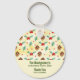 Fête de Noël (ou autre événement) merci de favoriser porte - clé avec un motif mignon avec des cônes de pin et saint sur un arrière - plan jaune aquarelle avec des petits cercles blancs éparpillés autour.