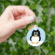 Ce porte - clé présente mon mignon dessin animé Penguin avec des flocons de neige dans l'arrière - plan. Un porte - clé amusant pour les enfants de tous âges.