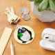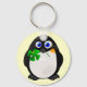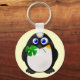 Un mignon petit manchot de dessin animé portant un grand shamrock vert dans son bec.