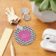 Un cadeau d'enseignant avec l'illustration d'une pomme rose sur un arrière - plan de chevron noir et blanc. Personnalisez avec votre nom sur pomme.