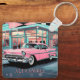 Carry a little slice of vintage Americana wherever you go with this retro keychain. It features a classic pink car parked in front of a classic 1950s diner, illustrated in bold colors and clean, stylized lines. It captures that carefree, chrome‑era charm—perfect for anyone who loves nostalgic road trips, mid‑century vibes, or classic car culture. An optional customizable name sits neatly beneath the artwork, making it easy to create a personalized gift or a unique everyday accessory. Simply click "Personalize this template" to change or remove the text. Whether clipped to your keys, bag, or backpack, this keychain adds a fun pop of personality and a touch of nostalgic roadside diner flair to your daily routine. Ideal for retro enthusiasts, car lovers, or anyone who appreciates playful, vintage‑inspired design.
