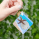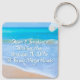 Mariage préférez anneau clé avec scène de plage, étoiles de mer et dollar de sable. Customisez avec le nom du couple, le texte "merci", ou laissez vide. Pour un usage personnel, ou pour les cadeaux de mariée, inclure un nom dans l'écriture bleue.