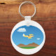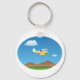 Un petit avion jaune survolant un paysage. Cette conception semble vraiment efficace sur ce Porte - clé