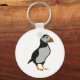 Un joli Puffin Atlantique debout illustré de la vue latérale. La tête de ce joli oiseau se tourne pour montrer son marquage de bec.
