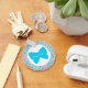 Papillon bleu personnalisé avec nom entouré de petits points colorés. Conception par 369MyName et 369.