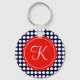 Pois bleu marine et blanc avec une pop de rouge sang pour un look classique, nautique. Personnalisez avec n'importe quelle initiale.
