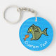 Illustration de dessin animé d'un poisson en colère qui intimide un petit. Texte personnalisé sur les deux côtés.