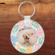 Designed with a pastel pink floral ring, this keychain beautifully showcases your Poodle. Customize the silhouette side with your pet's name for a unique keepsake. The back features space to upload a favorite photo for a meaningful accessory. Perfect for dog moms, pet lovers, and everyday use. Soft pastel styling keeps the design elegant and warm.