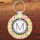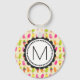 Un porte - clé avec un motif sucré en été avec des popsicles et des cônes de crème glacée dans des aquarelles colorées et vibrantes. Écrivez votre monogramme personnalisé dans un cadre rond avec une forme de fleur fantaisiste.