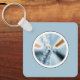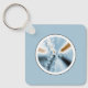 Ce porte - clé rond présente un art fractal bleu clair dans un cadre rond.