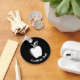 Pomme blanche avec icône feuille. Couleur arrière - plan personnalisée. Texte personnalisé des deux côtés.