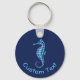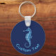 Icône bleue stylisée d'un hippocampe. Couleur arrière - plan personnalisée. Texte personnalisé des deux côtés.