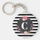 Un porte - clé personnalisé qui a un motif rayé noir et blanc. Au centre, il y a un logo monogramme qui peut être personnalisé avec votre initiale. Ce produit fait un grand cadeau pour toute occasion.