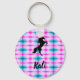 Black Horse Rearing Personnalisé Keychains - Rose et Aqua Blue design abstrait pour l'arrière - plan. Magnifique cheval noir au-dessus du nom personnalisé de votre choix !