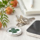 Grand porte - clé chanceux semblant, avec un shamrock de plaid de feuille du vert 4 d'amusement, sur un fond blanc. Grand charme chanceux qui fait un petit cadeau mignon aussi.