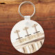 Porte - clé / porte-clés avec photo de robinets de cornet argenté contre un arrière - plan blanc.