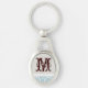 Blue Filigree Damask Blanc gris Tourbillonnant Design Papier Texture Papier-Texture Monogramme Porte - clé initial
