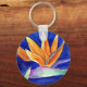 Le ventilateur vibrant comme la couronne de pétales oranges d'un oiseau de fleur paradisiaque contrastent avec l'arrière - plan bleu royal profond. Le tableau de fleurs d'aquarelle offre une vue panoramique de l'oiseau de fleur de paradis. Cette fleur est connue sous le nom de Fleur de Grue en Afrique du Sud. Personnalisez l'oiseau de porte - clé de fleur de paradis avec votre propre texte et images en utilisant le bouton "Customiser" pour créer un cadeau de fleur d'oiseau de paradis!