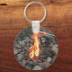 Un porte - clé avec une photo d'un feu de camp chaud.