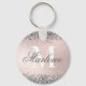 Elégante Parties scintillant d'argent et Porte - clé Faux Blush Pink Foil avec un nom de script de calligraphie personnalisable et un modèle monogramme gras. Un porte - clé initial mignon et girly qui ferait un adorable cadeau personnalisé pour les demoiselles d'honneur, anniversaires, nouvelle fête de ménage, etc.