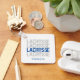 Des lettres en gras épellent le mot "LACROSSE" avec le mot "O" remplacé par un panier. Le design un peu déprimé fait un grand cadeau personnalisé pour un joueur, un entraîneur, une équipe ou un fan. Personnalisez votre nom à l'avant et ajoutez une superbe photo de votre joueur à l'arrière. Disponible en rouge, orange, jaune, violet, vert, bleu, noir, marron et bleu poudreux. Produits correspondants disponibles.