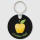 Pomme jaune avec icône feuille. Couleur arrière - plan personnalisée. Texte personnalisé des deux côtés.