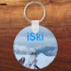 Superbe porte - clé, avec beaucoup de neige sur les montagnes et les pointes des skis de neige montrant au fond. Le texte lit iSki et peut être modifié pour lire tout ce que vous voulez. Idéal pour tous les skieurs de neige.