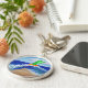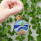 (Le tableau est d'un ange vert sur une planche de surf orange attrapant une vague. Un soleil brille dans l'arrière - plan et un palmier coule doucement sur la plage. La vague se prépare à s'écraser sur la plage en lissant la surface sablonneuse. L'ange vert rend hommage à l'Archangel Raphael dont la couleur est verte et est connu pour apporter la guérison. Le soleil aide à maintenir la vie et à travers elle les plantes comme les palmiers se renforcent et poussent. La puissance de l'énergie solaire est symbolisée dans la planche de surf orange-jaune appariée. La plage est propre et lisse. Ce tableau a été inspiré par "Effacer l'ange du cancer". Au lieu d'ajouter du texte de ce tableau, il a été laissé ouvert afin que vous puissiez vous effacer, surfer sur la vague, ou d'autres aller avec le message de flux à la plage, nuage, ou ciel. Les produits de la vente de ce porte - clé appuient DonnaBellas Angels, un organisme de bienfaisance sans but lucratif 501(c)3.