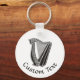 Icône de harpe noire et blanche avec décoration de noeud celtique. Couleur arrière - plan personnalisée. Texte personnalisé des deux côtés.