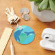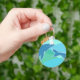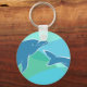 Le porte - clé est de dauphins graphiques sur un arrière - plan bleu et vert.