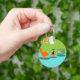 On dit que les chiens ont des propriétaires et les chats ont du personnel. Le félin sur ce Porte - clé de l'Âge Kitty de l'Espace Rétro ne pouvait pas être d'accord plus! Décoré dans un style minimaliste des années 1960, cet établissement propose un chat noir élégant dans un salon moderne du milieu du siècle. La chambre sophistiquée présente un mur vert en pierre. La moquette est un aqua aux ombres turquoises. Les meubles de la chambre comprennent un jaune, un croquis de Spoutnik, un transat orange avec tabouret assorti et une télévision verte avec oreilles de lapin. Le chat noir chanceux est perché sur le tabouret devant la télévision. Son spectacle favori se déroule ! Sur l'écran de télévision, on peut voir une famille de télévision classique en noir et blanc qui résout tous les problèmes de la vie dans une émission d'une demi-heure. Ce design est parfait, si nous le disons nous-mêmes.