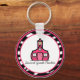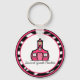 Un porte - clé avec le logo de The Pink Schoolhouse à l'intérieur d'un cadre d'impression zébrée avec garniture rose. Texte : "Enseignant de deuxième année."