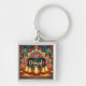 Festive Diwali Étiquette avec Elegant Gold Text porte - clé Célébrez l'esprit de Diwali avec ce porte - clé dynamique et personnalisable, avec lampes à huile traditionnelles (diyas), motifs floraux complexes, et un accueil chaleureux "Happy Diwali".