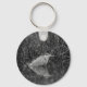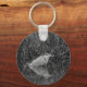 Porte - clé / porte-clés avec photo en noir et blanc d'un héron gris avec neige tombant en hiver.